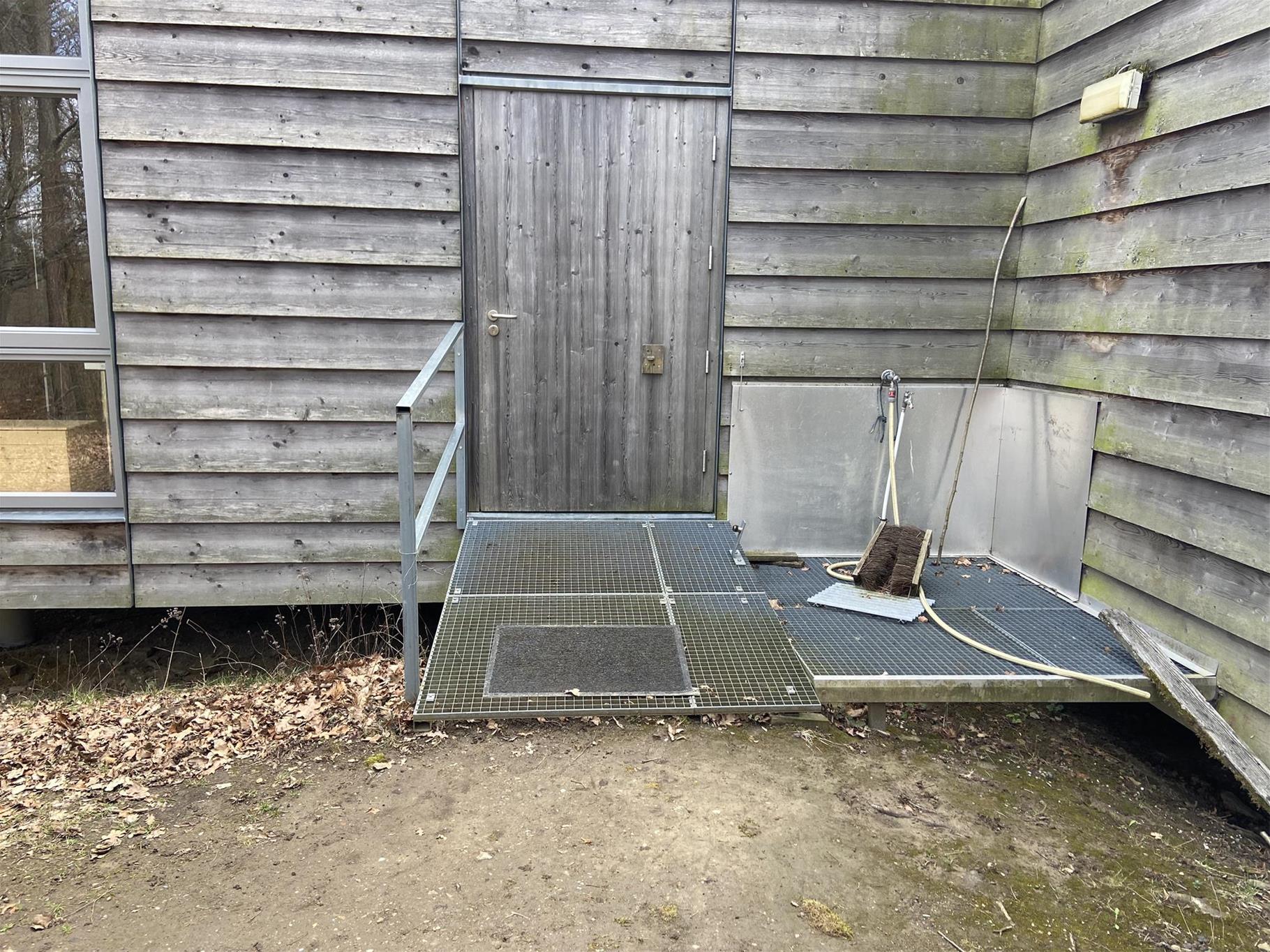 The entrance to the National Park House is on solid ground. There is a 2 cm high threshold at the entrance door.